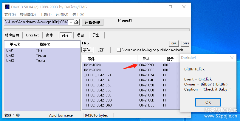 总结:以后遇到Delphi程序,首先使用DD试试。