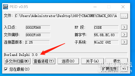 通过用PEID查壳。我们发现无壳,是Delphi语言程序。