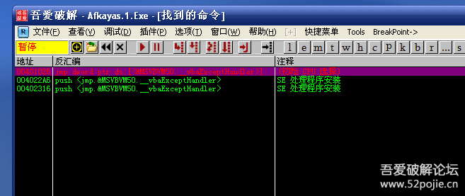 然后在找到的所有命令下断。