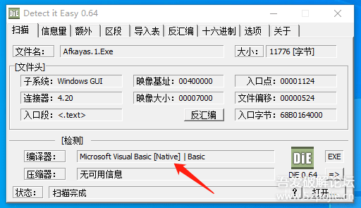 很简单,用DIE64工具就可以。我们对比一下: