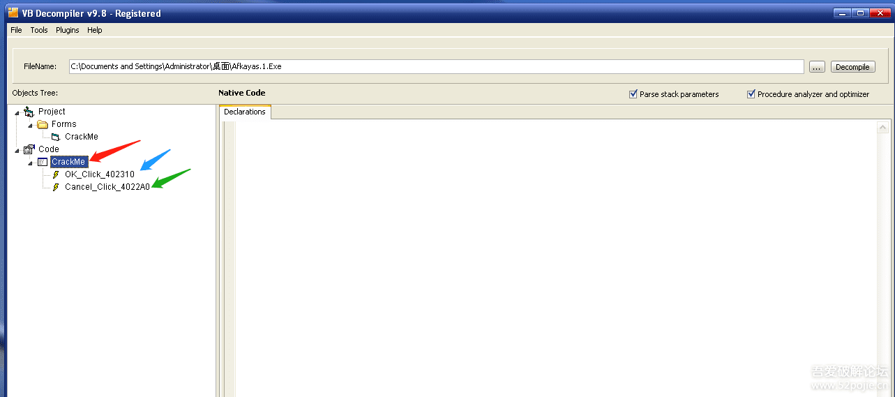 对于NATIVE CODE的VB程序,我们如何破解呢?